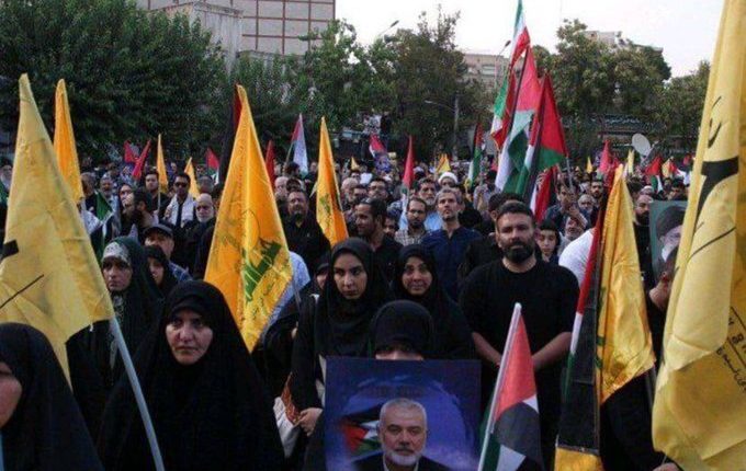 المواطنون الايرانيون يطالبون بالثأر لدم الشهيد هنية خلال مراسم تشييع جثمانه