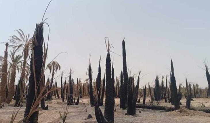 وفي ظل الجفاف المترافق مع حرارة مرتفعة صيفا، تصاعدت وتيرة الحرائق في هذه الواحة في الفترة الأخيرة، والتي أتت على الكثير من أشجار النخيل فيها.