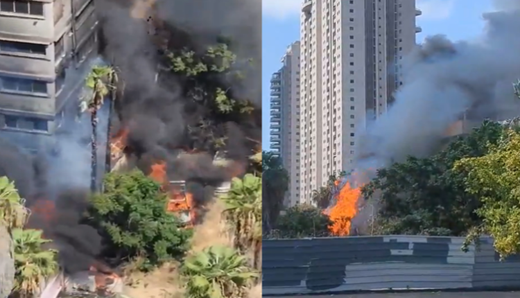 اندلاع حريق ضخم في تل أبيب (فيديو)
