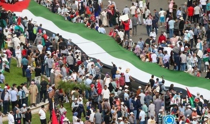 شبكة الشرق الأوسط نيوز : شارك مئات المغاربة، الأربعاء، في وقفة أمام مبنى البرلمان بالعاصمة الرباط؛ للتضامن مع المسجد الأقصى بالقدس، والمطالبة بوقف الحرب الإسرائيلية المتواصلة على قطاع غزة.