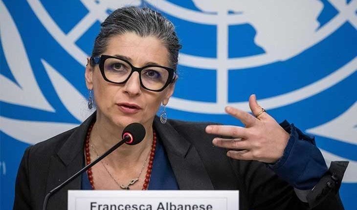 وذكرت ألبانيز، أن المطلعين على التاريخ الفلسطيني سيدركون ماذا حدث بالفلسطينيين تحت الاحتلال الإسرائيلي غير القانوني، وسيشاهدون مثالا حيّاً للاستعمار الاستيطاني”.