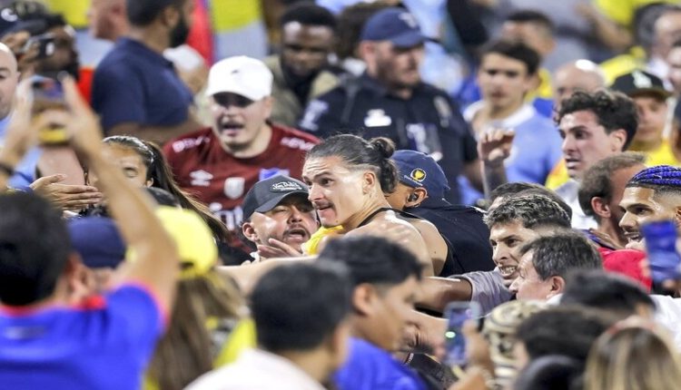 بعد فوز كولومبيا 1-0 في مباراة الفريقين بالدور قبل النهائي صعد لاعبون بمنتخب أوروغواي إلى المدرجات وتبادلوا الضربات مع مشجعي الفريق المنافس وظهر نونيز بعدة مقاطع فيديو مصورة وهو يتبادل اللكمات مع بعض الجماهير.