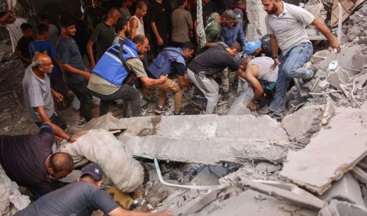 وقال محمود بصل الناطق باسم الدفاع المدني الفلسطيني، إنه تم انتشال 12 شهيدا فلسطينيا من بينهم نساء وأطفال على الأقل وعشرات الإصابات منذ ساعات الصباح من مدينة غزة فيما بقي آخرون عالقون تحت الأنقاض”.