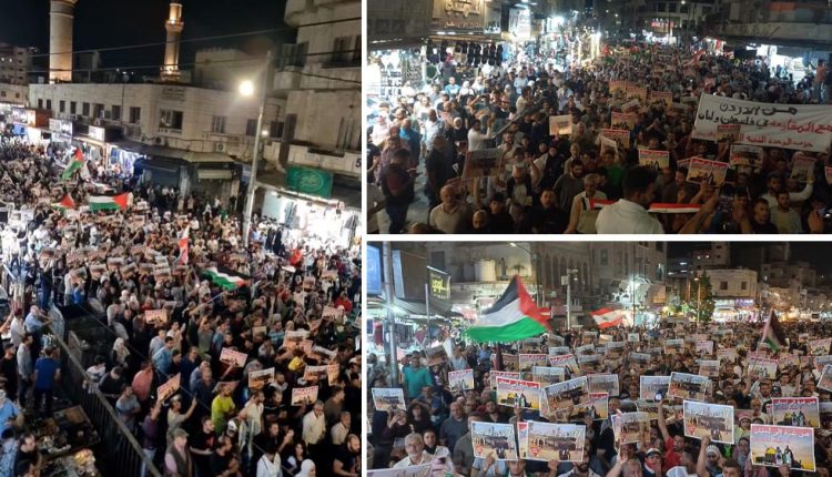 شبكة الشرق الأوسط نيوز : شارك آلاف الأردنيين في المسيرة التي انطلقت بدعوة من الملتقى الوطني لدعم المقاومة وحماية الوطن بعد صلاة العشاء، الجمعة، تحت شعار “من غزة إلى لبنان.. لا بقاء للكيان”.