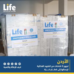 وتعمل لايف للإغاثة والتنمية منذ سنوات على إرسال المساعدات إلى المناطق المتضررة بالأزمات، مع تركيز خاص على قطاع غزة الذي يعاني سكانه من نقص حاد في المواد الأساسية وتدهور الظروف المعيشية.