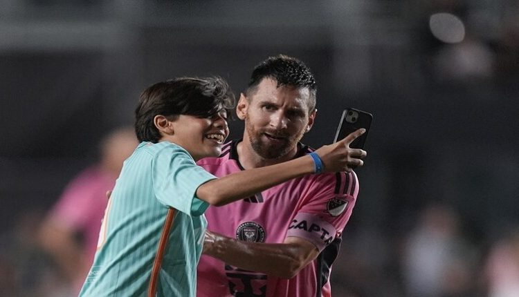 شبكة الشرق الأوسط نيوز : انتشر مقطع فيديو على منصة “X” لقطة طريفة للنجم الأرجنتيني ليونيل ميسي مع طفل اقتحم أرض الملعب لالتقاط صورة “سيلفي” معه، خلال مباراة فريقه انتر ميامي وضيفه شارلوت، فجر اليوم الأحد.