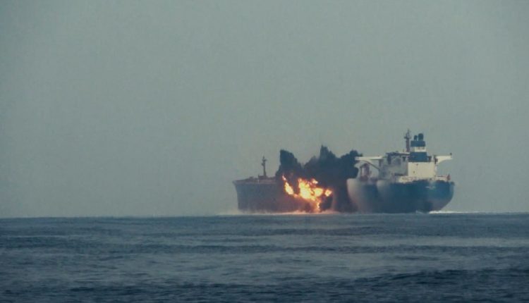 ونشر الحوثيون صورا ومشاهد وثقت الضربة المباشرة التي استهدفت الناقلة.