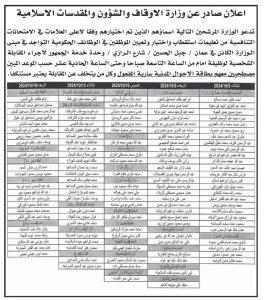 “الأوقاف” تدعو مرشحين للتعيين بوظيفة إمام لمراجعتها – أسماء