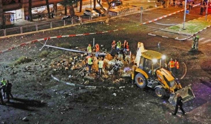 وتداول إسرائيليون على مواقع التواصل الاجتماعي مقطع فيديو يظهر سقوط صاروخ في مدينة بات يام، بالقرب من تل أبيب.