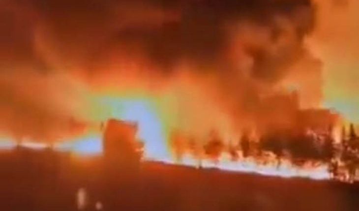 وأظهرت مقاطع الفيديو من موقع الحادث حريق هائل يمتد لأنحاء المنطقة بأكملها، وما يبدو أنها جثث متناثرة في الموقع.