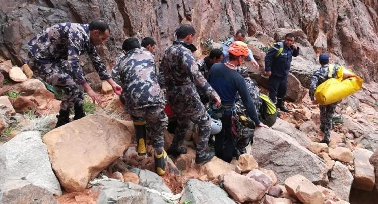 الدفاع المدني ينقذ سائحة أجنبية سقطت في منطقة وعرة بمعان