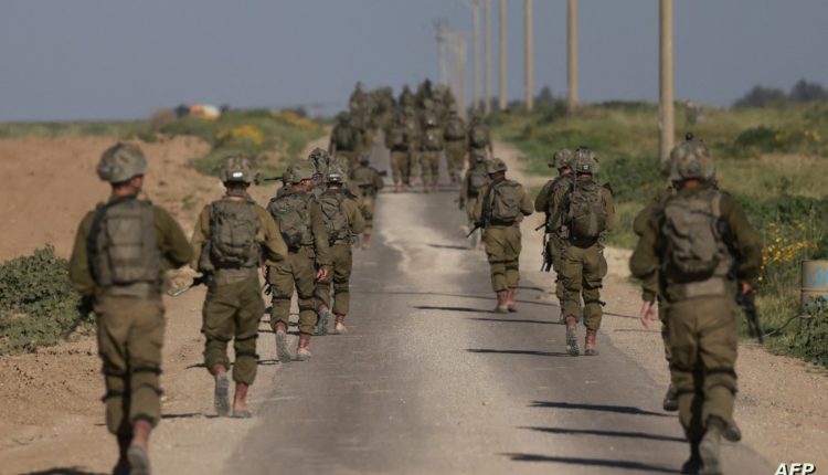 Israeli soldiers walk near the border with Gaza Strip in southern Israel on March 12, 2024, amid the ongoing battles between Israel and the Palestinian militant group Hamas. (Photo by Menahem KAHANA / AFP)