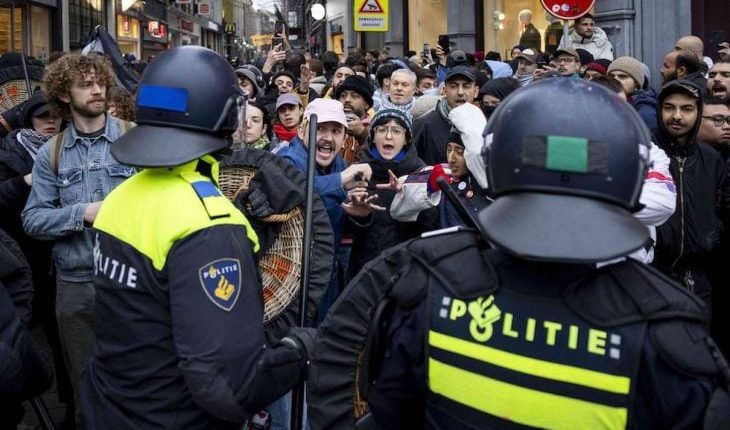 وتجمع المئات من المتظاهرين في ساحة دام بالعاصمة وهتفوا “الحرية لفلسطين” و”أمستردام تقول لا للإبادة الجماعية” في إشارة إلى حرب غزة.