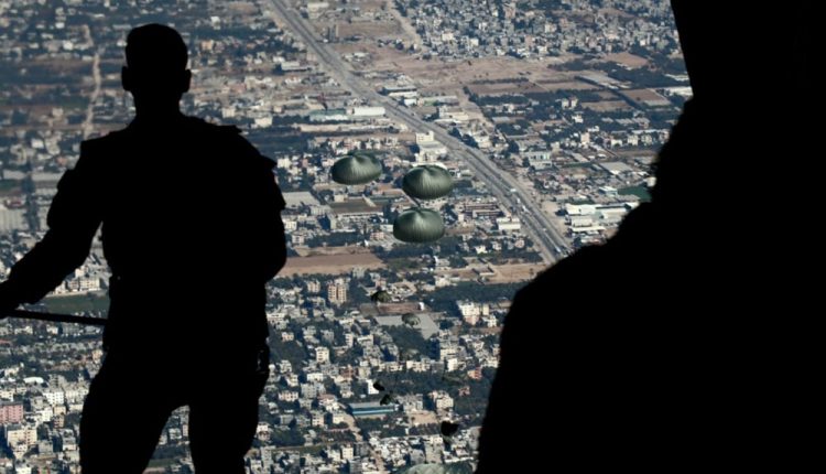 القوات المسلحة تنفذ إنزالاً جوياً لمساعدات إنسانية وإغاثية على قطاع غزة