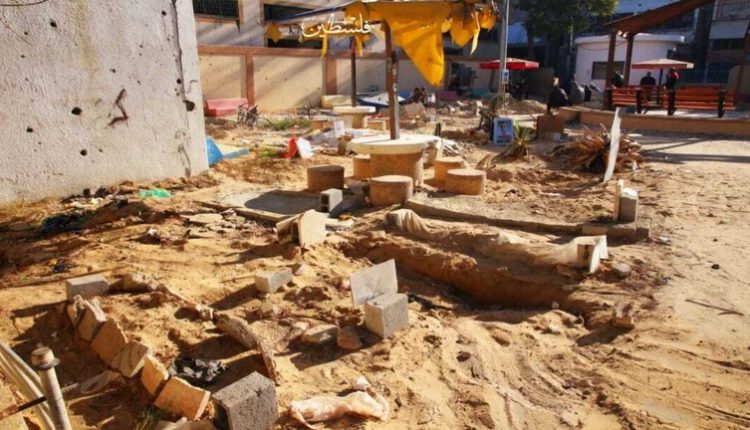 متنزه مخيم الشاطئ غرب مدينة غزة يتحول إلى ” مقبرة للشهداء ” بسبب الحرب (صور)
