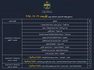 وفيما يلي برنامج عمل المحطات المتنقلة ليومي غد الاربعاء والخميس :