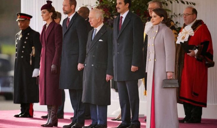 ووصل الأمير وزوجته الشيخة جواهر بنت حمد بن سحيم آل ثاني بالسيارة إلى عرض حرس الخيالة في لندن مع الأمير وليام وزوجته كيت، التي تستأنف مهامها الرسمية بعد خضوعها لعلاج كيميائي وقائي من السرطان.