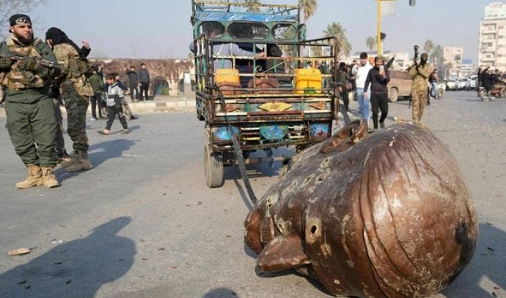 سوريون يسقطون تمثال حافظ الأسد في وسط دمشق- (فيديو)