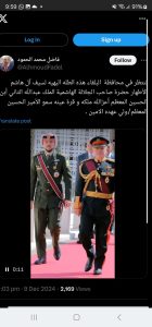 شبكة الشرق الأوسط نيوز : نشر العين فاضل باشا الحمود على منصة X رسالة ترحيبية بقدوم جلالة الملك عبدالله الثاني ابن الحسين المعظم وسمو ولي العهد ،الأمير الحسين المعظم لمحافظة البلقاء