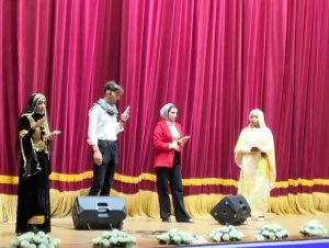 ثم قدم الطلاب فقرة غنائية عن الوطن العربي وظهر كلا منهم بزى بلده التقليدي وأنتهوا بغناء ومهما كان أنتى مصر وكل خطوة بنصر ، نعيش لمصر ونموت لمصر ،مصر مصر تحيا مصر .