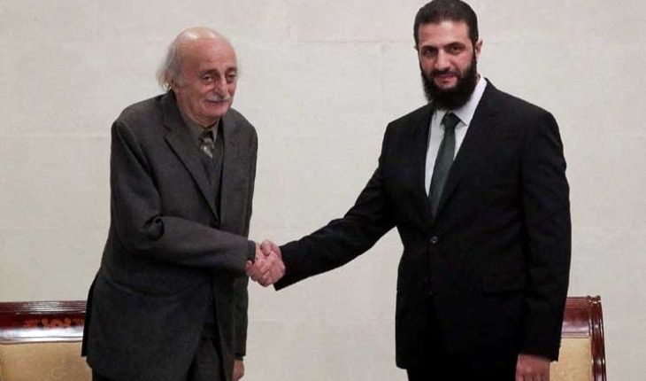 وكان الزعيم الدرزي من أوائل القيادات اللبنانية التي اتصلت بالشرع وهنأته على الانتصار بسقوط نظام بشار الأسد، وجاءت زيارته اللافتة لتعبّد طريق بيروت دمشق بعد الانقطاع الطويل لسنوات بين لبنان الرسمي والنظام السوري السابق.