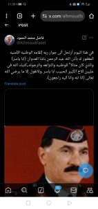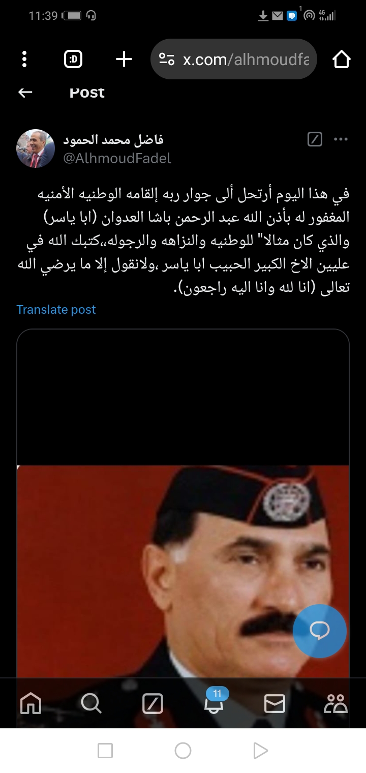 العين فاضل باشا الحمود ينعى مدير الأمن العام الأسبق عبد الرحمن باشا العدوان
