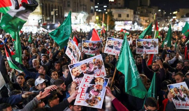 رُصدت حناجر آلاف الأردنيين وسط العاصمة عمان في وقت متأخر بعد صلاة عشاء الخميس تصدح “صوتك عالي زي النار.. غزة انتصرت يا سنوار”.