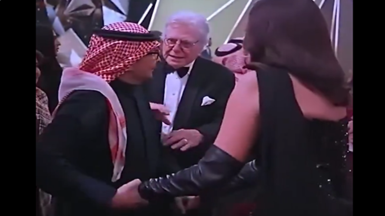 وفي الفيديو تظهر أنغام وهي تصافح عبد المجيد عبدالله، خلال حضورهما حفل joy awards ثم يبادر عبدالمجيد بتقبيلها عدة مرات، ما دفع الفنان المصري حسين فهمي الذي كان بجوارهما للقول “خلاص بوستين كفاية”.