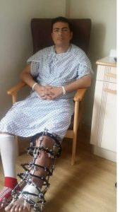 ورغم انتهاء مأموريته ،توجه لمكان أحداث العنف ، وتصدى للعناصر الإرهابية، وتمكن من إلقاء القبض على أخطر عنصر بينهم، وأطلقت عليه عناصر جماعة الإخوان الإرهابية رصاصا محرما دوليا بهدف إفلات الإرهابي وتهريبه وبالرغم من ذلك أصر على مواجهة قوي الشر التى تريد النيل من بلده ومن المواطنبن المكلف بالحفاظ على أرواحهم ولن يتراجع لحظة واحدة وظل ثابتا على موقفه بكل شجاعة رغما عن تلقى العديد من الطلقات التى أدت إلى إصابته إصابات خطيرة أفقدته قدمه وفقد الوعي، وتم نقله للمستشفى لتلقي العلاج وأجرى العديد من العمليات الجراحية في مستشفى الشرطة وبعدها قررت وزارة الداخلية سفره إلى لندن وأجرى هناك ١٥عملية جراحية ثم انتقل إلى ألمانيا وأجري ١٨عملية أخرى .