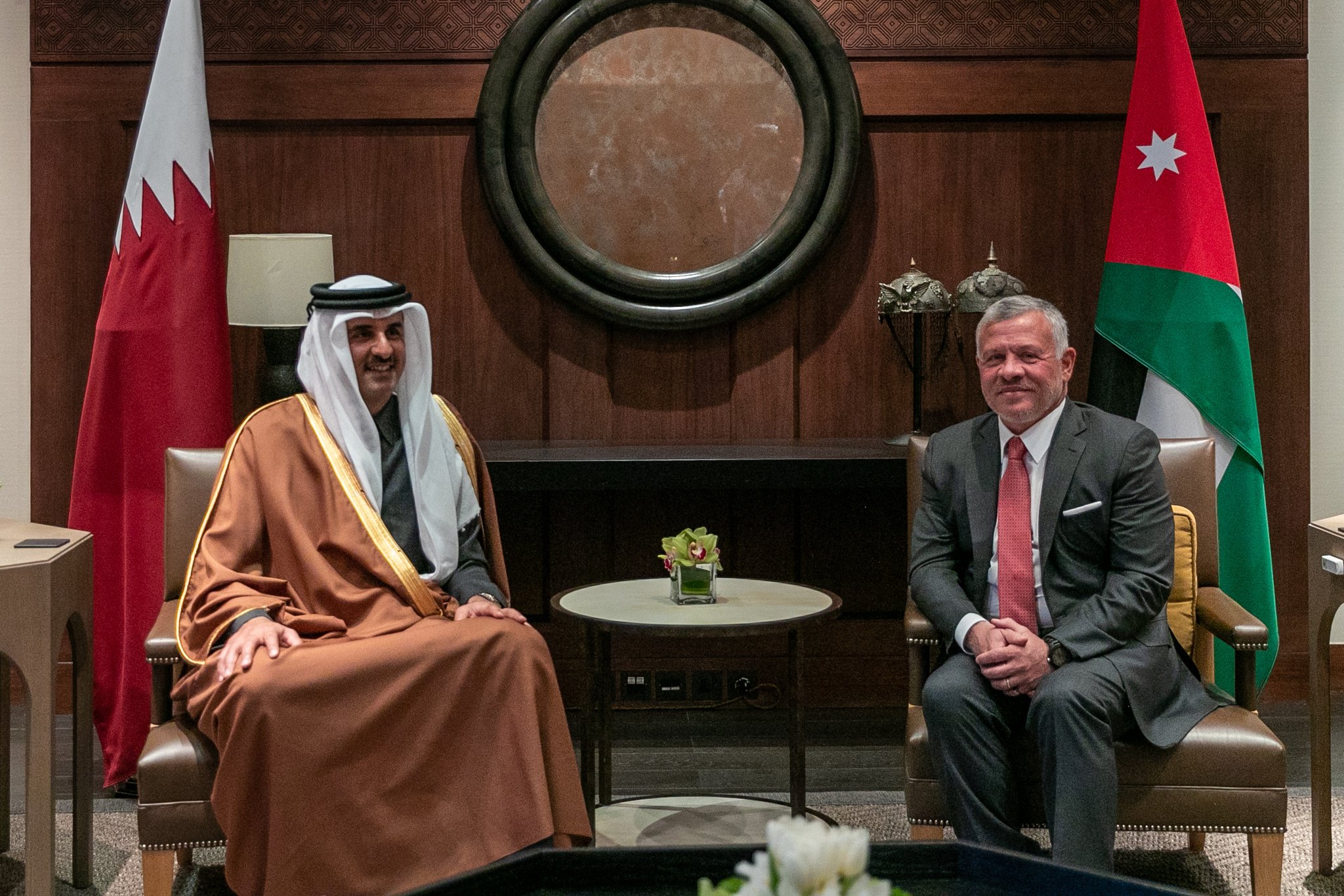 شبكة الشرق الأوسط نيوز : بحث جلالة الملك عبدالله الثاني وسمو الشيخ تميم بن حمد آل ثاني أمير دولة قطر خلال اتصال هاتفي، اليوم الأربعاء، التطورات الراهنة، خصوصا في غزة والضفة الغربية وسوريا.