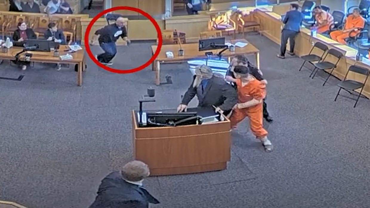 وهرع ضابط إصلاحي للمساعدة بينما كان المحامون والمتهمون الآخرون وأفراد الجمهور يشاهدون، مذهولين، قبل أن يفض رجال إنفاذ القانون المشاجرة في النهاية.