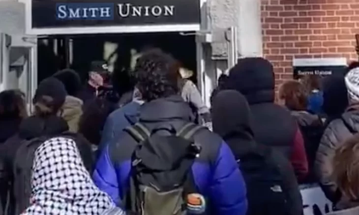 شبكة الشرق الأوسط نيوز : أطلق ناشطون في كلية بودوين في برونزويك بولاية مين ما يُعتقد أنه أول مخيم تضامني مع فلسطين منذ تولي الرئيس دونالد ترامب منصبه، حيث احتلوا الطابق الأول من اتحاد الطلاب في مدرسة الفنون الليبرالية للاحتجاج على اقتراح الرئيس الأمريكي بالاستيلاء على قطاع غزة وتهجير المواطنين الفلسطينيين أصحاب البلاد.