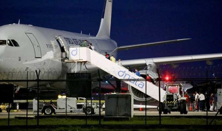 وكان المهاجرون مكبلين، واشتكى بعضهم من عدم إعطائهم الماء أو تمكنهم من الذهاب إلى المرحاض.