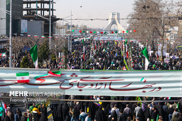 منذ بداية اليوم، حضر أهالي العاصمة في الشوارع المؤدية إلى ساحة أزادي، مكان إقامة مراسم الذكرى السنوية لانتصار الثورة.