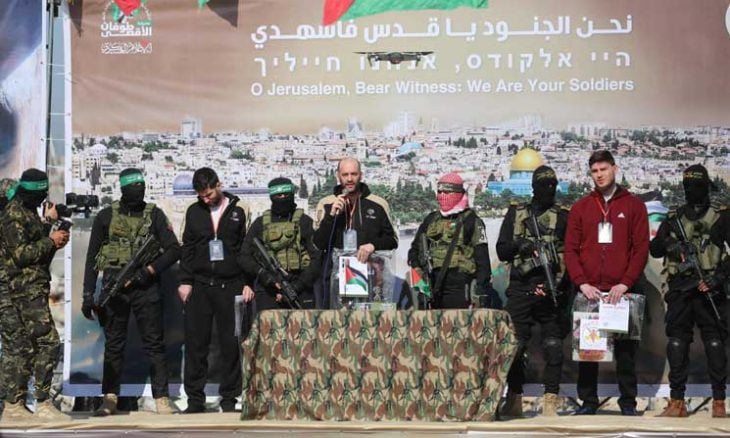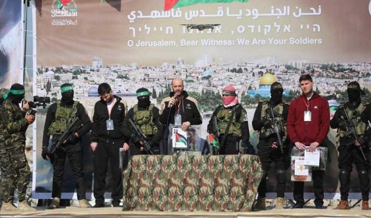 شبكة الشرق الأوسط نيوز: سلمت كتائب “القسام” و”سرايا القدس”، السبت، 3 أسرى إسرائيليين بينهم اثنان يحملان الجنسيتين الأمريكية والروسية إلى اللجنة الدولية للصليب الأحمر شرق مدينة خان يونس جنوبي قطاع غزة.