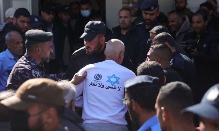 وخلال الأسبوعين الماضيين، أفاد أسرى فلسطينيون تم الإفراج عنهم آنذاك بأنه تم إجبارهم على ارتداء أساور تحمل تهديدات بالملاحقة والاعتقال، طُبع عليها إلى جانب علم إسرائيل “الشعب الأبدي لا ينسى، أطارد أعدائي وأمسك بهم”.