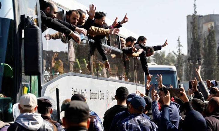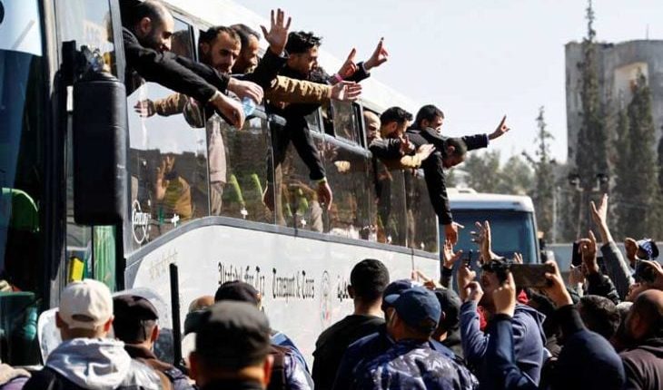 شبكة الشرق الأوسط نيوز : وصل أسرى فلسطينيين محررين من سجون الاحتلال الإسرائيلية، السبت، على متن حافلات إلى مدينة خان يونس جنوبي قطاع غزة.