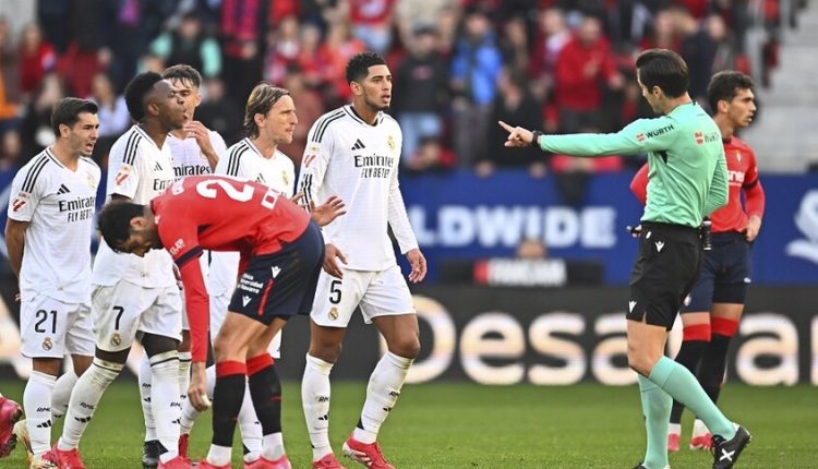 لكن فريق ريال مدريد تلقى ضربة موجعة في الدقيقة 39 بطرد نجمه الإنجليزي جود بيلينغهام.