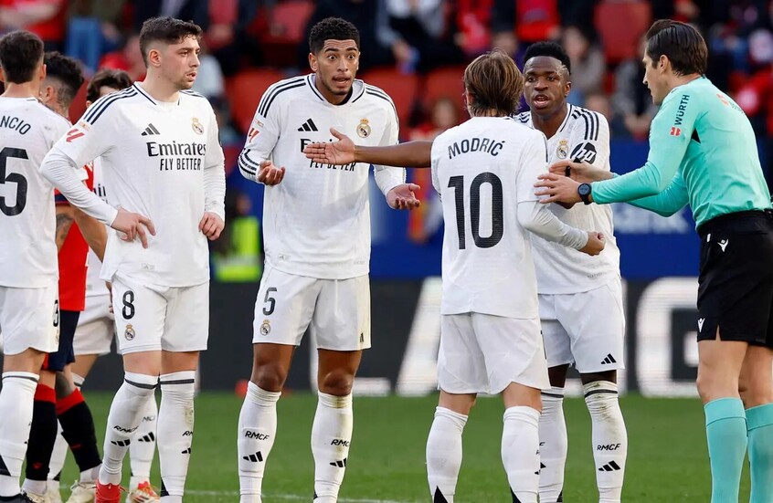 شبكة الشرق الأوسط نيوز : شهدت مباراة ريال مدريد ضد أوساسونا في الدوري الإسباني حالة جدلية في طرد جود بيلينغهام لاعب الفريق الملكي .