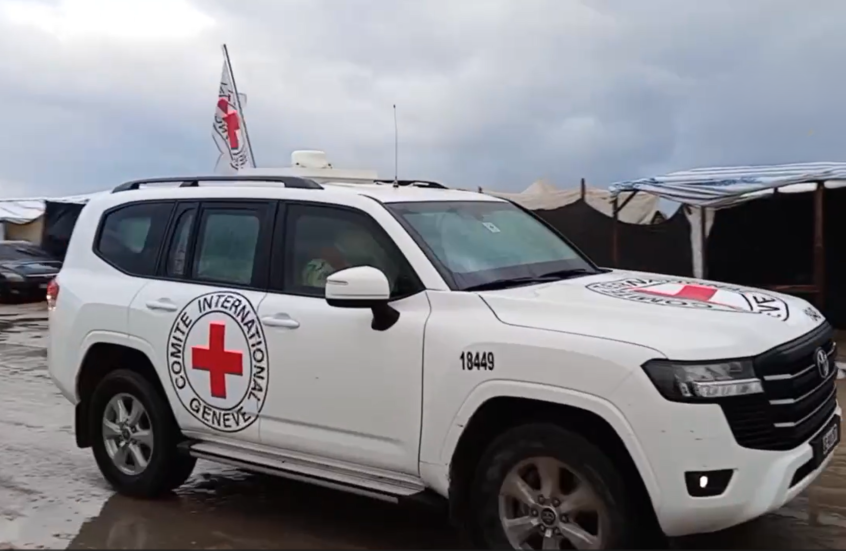 حافلات وسيارات الصليب الأحمر تتحرك من رفح نحو معبر كرم أبو سالم لاستلام الأسرى الفلسطينيين