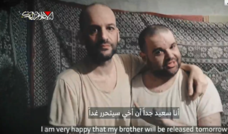 في المقطع الذي نشرته القسام عبر تلغرام، يظهر الأسيران الأخوان وهما يودعان بعضهما، حيث ينقل المتبقي بالأسر رسالة إلى الحكومة الإسرائيلية قائلا: “أنا سعيد جدا لأن أخي سيتحرر غدا، ولكن من غير المنطقي بأي شكل من الأشكال أن يفرقوا بين العائلات”.
