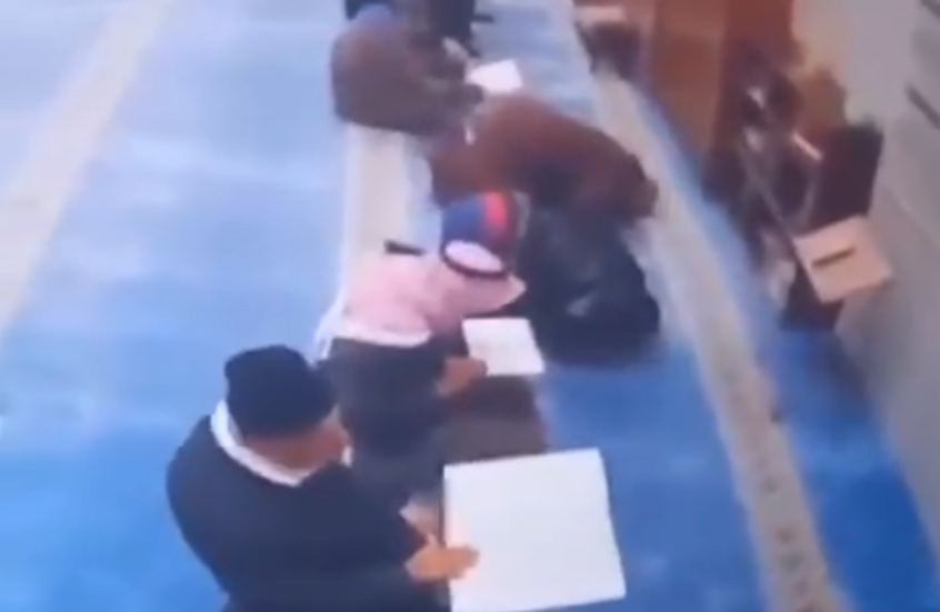 وأبان الفيديو المتداول رجلا مسنا يجلس داخل المسجد وأمامه المصحف وكان يقرأ القرآن ثم سقط فجأة على الأرض، واتجه نحوه عدد من المصلين وتبين أنه توفي.