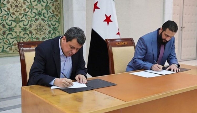 وأعلنت رئاسة الجمهورية العربية السورية عن توقيع اتفاق بين الحكومة السورية وقوات سوريا الديمقراطية (قسد)، يقضي بدمج المؤسسات المدنية والعسكرية في شمال وشرق سوريا ضمن مؤسسات الدولة، مع التأكيد على وحدة الأراضي السورية ورفض أي محاولات للتقسيم.
