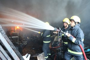 الدفاع المدني يخمد حريق ثلاثة مستودعات لمستلزمات الأفراح في محافظة العاصمة