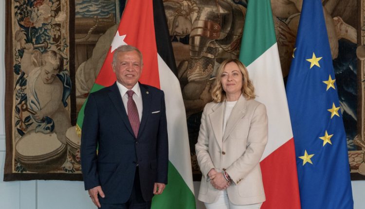شبكة الشرق الأوسط نيوز : أكد جلالة الملك عبدالله الثاني لدى لقائه رئيسة الوزراء الإيطالية جورجيا ميلوني في روما، اليوم الاثنين، أن منح الفلسطينيين كامل حقوقهم المشروعة وفق حل الدولتين هو السبيل الوحيد لاستقرار المنطقة.