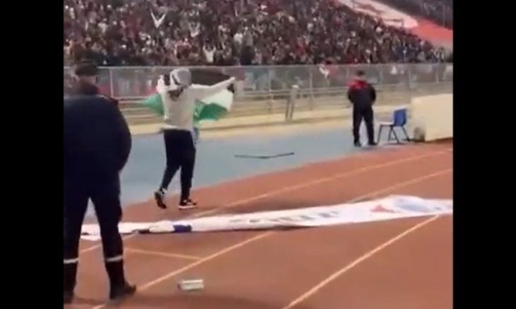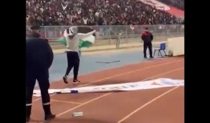 ومساء الاثنين، وثق مقطع مصور نشره مستخدمون لفيسبوك، اقتحام شاب أرض ملعب “رادس” رافعا العلم الفلسطيني، ثم توجهه لإزالة لافتة إعلانية تخص علامة تجارية فرنسية، يعتبرها النشطاء في تونس مساندة لجرائم الإبادة التي ترتكبها إسرائيل في غزة.