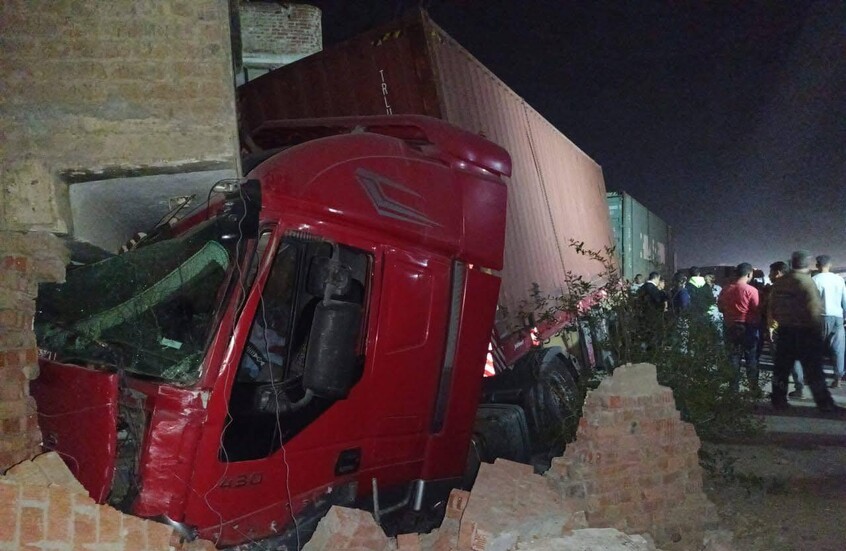 مصر.. شاحنة ثقيلة تنحرف عن الطريق وتطيح بمنزل (صورة)