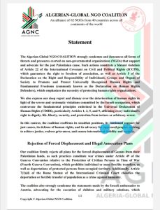بيان التحالف بشأن التهديدات ضد المنظمات غير الحكومية وخطط التهجير القسري وانتهاكات الاحتلال الإسرائيلي