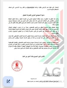 وأمام هذه التطورات الخطيرة، يدعو تحالفنا المجتمع الدولي إلى التحرك العاجل، وإعادة تفعيل الضغط السياسي والقانوني على الاحتلال الإسرائيلي، كما ندعو مجلس الأمن الدولي إلى تحمل مسؤولياته بموجب أحكام الفصل السابع من ميثاق الأمم المتحدة، لضمان احترام الاحتلال الإسرائيلي لاتفاق وقف إطلاق النار في جميع مراحله.