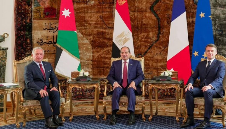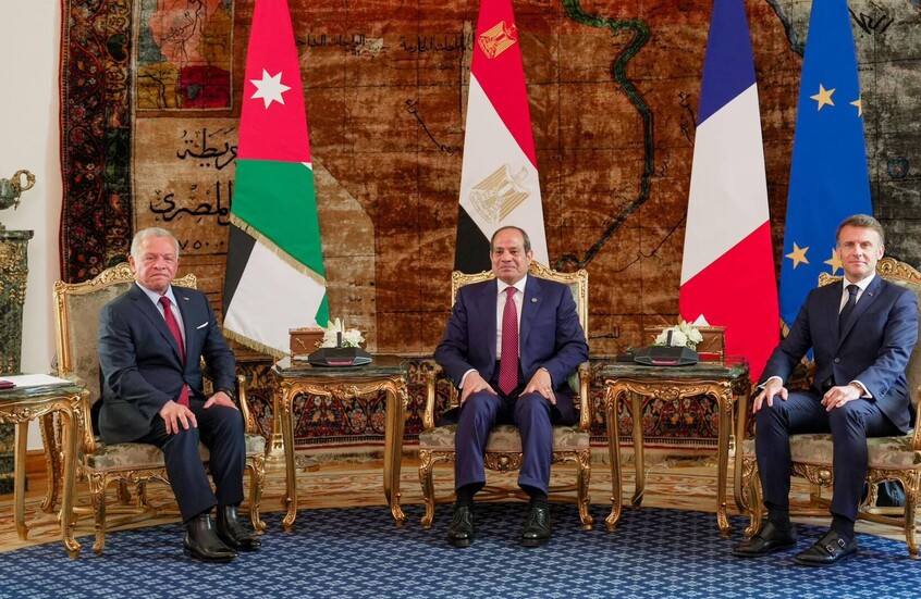 واستضافت القاهرة اليوم، قمة ثلاثية مصرية فرنسية أردنية بمشاركة الرئيسين عبد الفتاح السيسي وإيمانويل ماكرون، والملك عبد الله الثاني بن الحسين، حول الوضع الخطير في قطاع غزة.